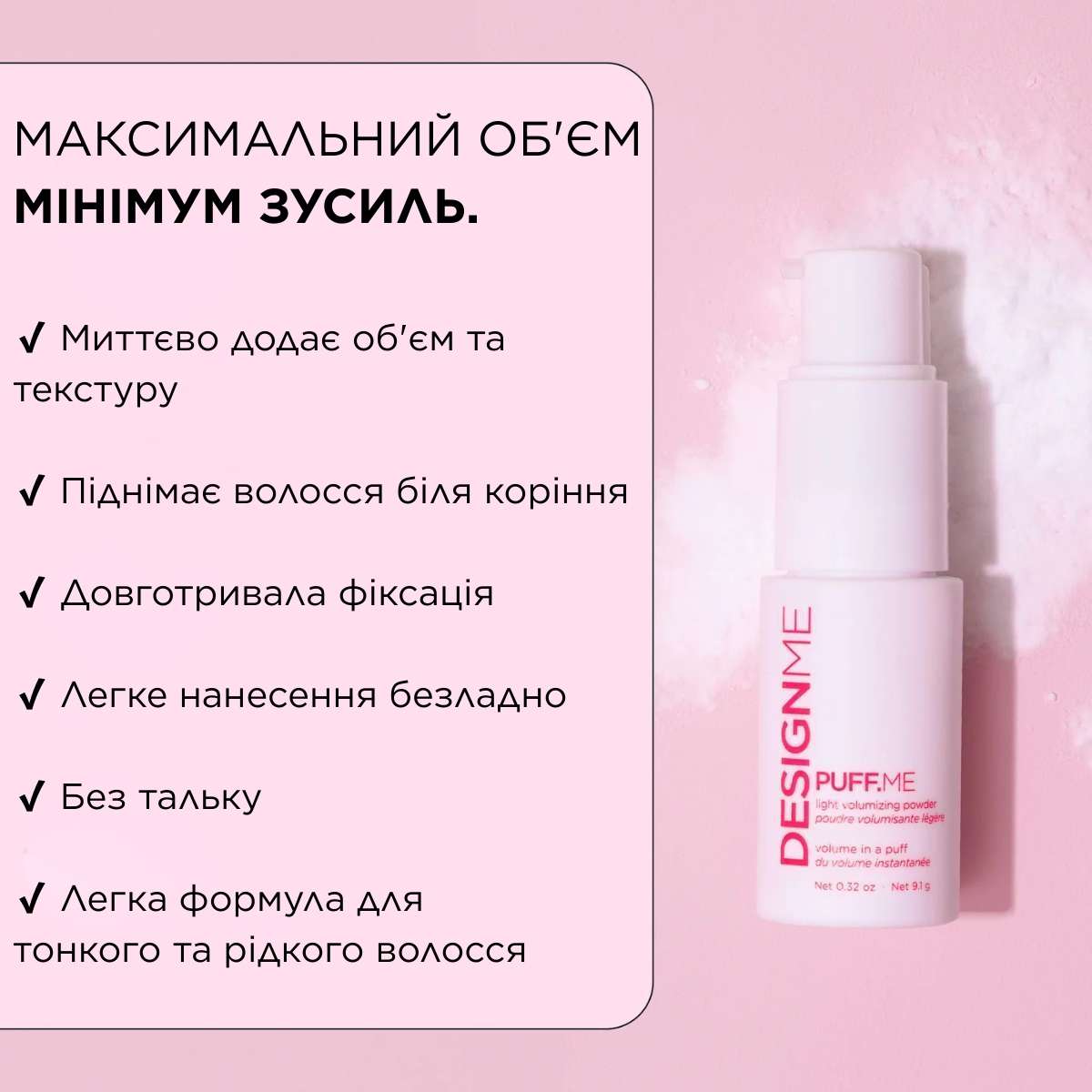 PUFF.ME Light Volumising Powder to ultralekka wersja kultowego pudru dodającego objętości, stworzona specjalnie z myślą o włosach cienkich i jasnych. Natychmiast unosi włosy u nasady, dodając im tekstury i objętości bez pozostawiania osadu i obciążania. Posiada wygodną pompkę punktową do kontrolowanej aplikacji dokładnie tam, gdzie chcesz.