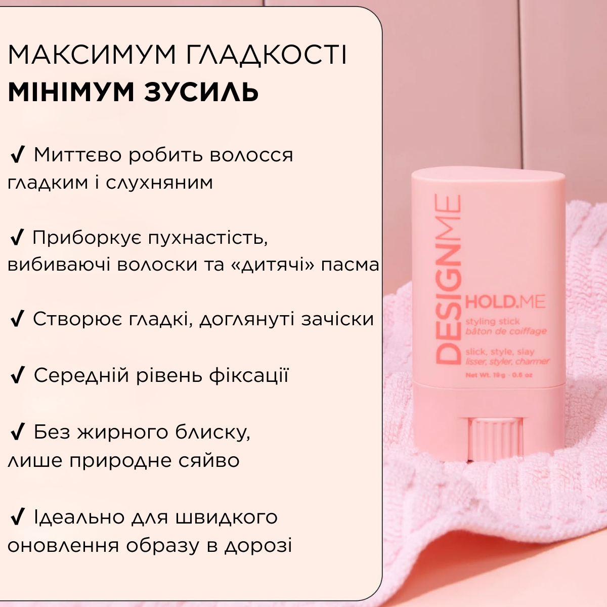 HOLD.ME Styling Stick to sztyft do stylizacji zapewniający precyzyjną kontrolę nad włosami, który doskonale ujarzmia puszenie się włosów, odstające kosmyki i puszenie się włosów u nasady. Dzięki kompaktowemu formatowi aplikatora z pędzelkiem, produkt jest łatwy do nałożenia na problematyczne obszary bez pozostawiania tłustych, lepkich lub twardych włosów. Jest idealny do tworzenia gładkich fryzur, koków, warkoczy i kucyków. Szybka i łatwa kontrola kształtu - zawsze i wszędzie.