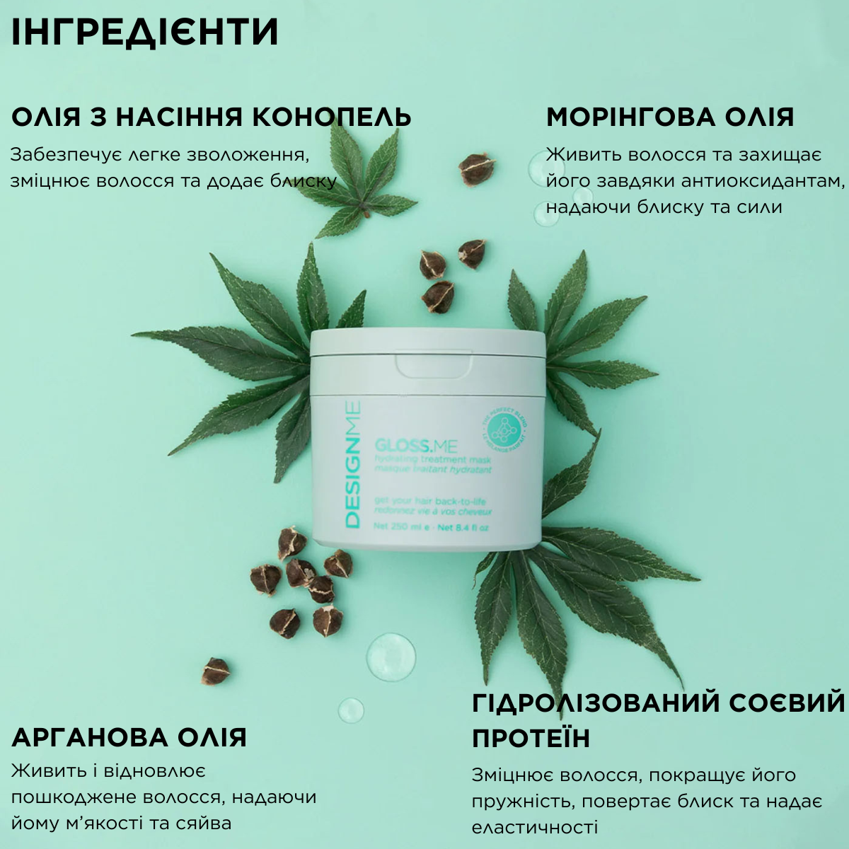 GLOSS.ME Treatment Mask to głęboko odbudowująca maska do włosów z efektem rozświetlenia, przeznaczona do intensywnego odżywiania, nawilżania i wzmacniania włosów. Dzięki kompleksowi naturalnych olejków (konopny, arganowy, moringa), a także witaminie E i proteinom, maska wnika głęboko w strukturę włosa, wygładza go i nadaje lustrzany połysk. Idealna do włosów suchych, zniszczonych lub farbowanych.