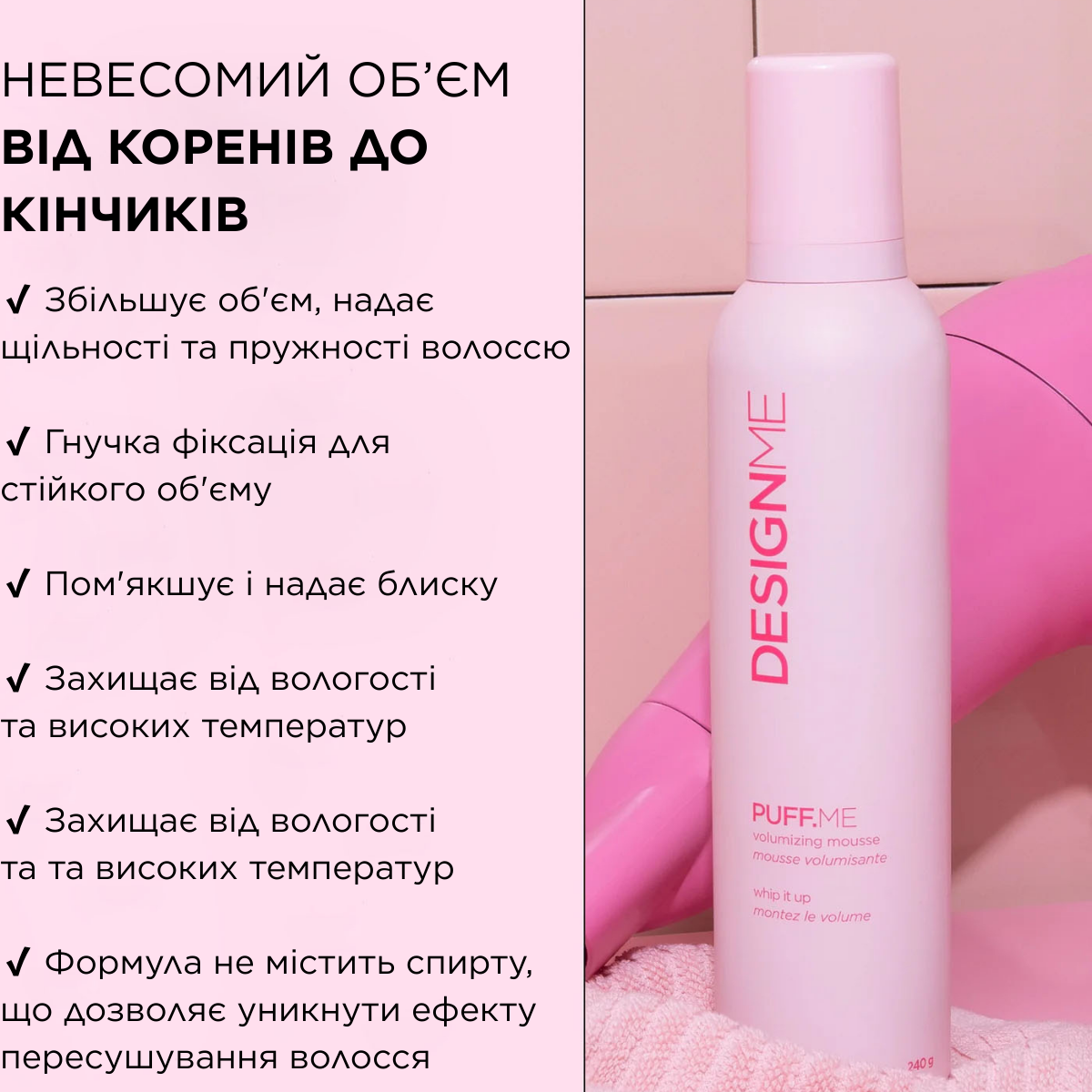 Мусс для укладки и придания объема волосам Puff.ME Volumizing Mousse