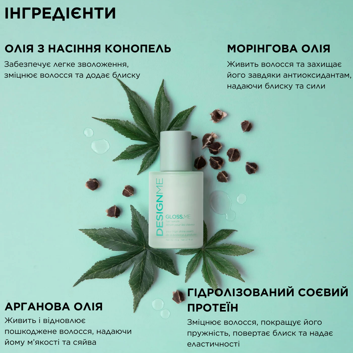 GLOSS.ME Hair Oil - это легкое, но мощное масло для волос, которое мгновенно придает блеск, увлажнение и защиту без утяжеления. Благодаря комплексу из 5 натуральных масел, в том числе арганового, семян моринги и семян каннабиса, оно глубоко питает, уменьшает пушистость, делает волосы мягкими, гладкими и послушными. Подходит для всех типов волос, включая сухие, окрашенные и пористые.