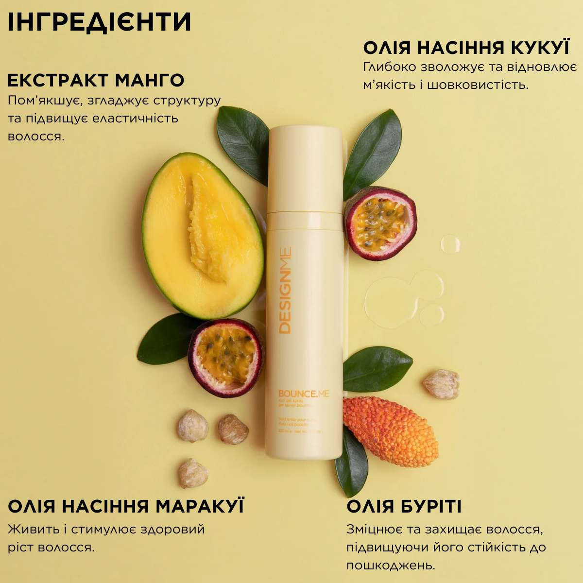 BOUNCE.ME Curl Spray Gel - это инновационный гель-спрей для формирования четких, упругих завитков без хрустящего эффекта. Он сочетает увлажнение, фиксацию и защиту в легкой невесомой формуле. Идеальное для вьющихся и волнистых волос, средство с аргановым маслом, кактусом и пантенолом создает естественный рисунок локонов, уменьшает пушистость и обеспечивает термозащиту при сушке.